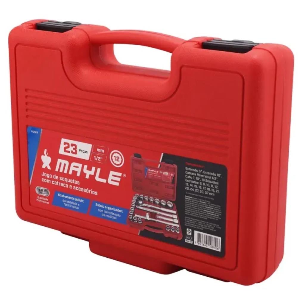 KIT SOQUETE ESTRIADO ENCAIXE 8 A 32MM 1/2 CATRACA 23PC - MAYLE